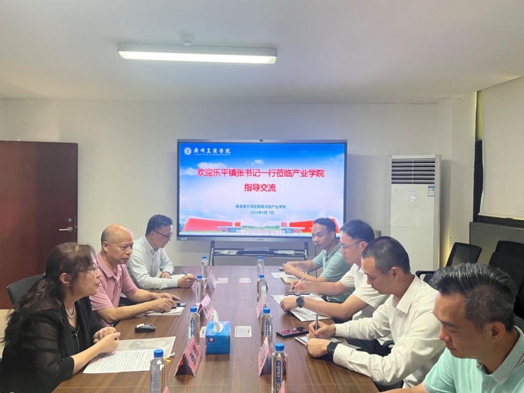 【本网讯】5月7日下午,三水区委常委、乐平镇党委书记张志彬,乐平镇副镇长招钜发等一行5人莅临粤港澳大湾区智慧冷链产业学院交流指导工作。ky开元集团官网党委副书记、副校长张辉,产业学院执行院长谢如鹤,创新创业学院副院长曾继安,产业学院党支部书记、副院长黄鹏,管理学院副院长邹剑峰,广商教育研究院副院长江嘉辉,产业学院办公室主任吴杰参加活动。会议由产业学院执行院长谢如鹤主持。