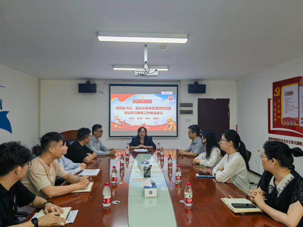 会上,乔鹏亮汇报了管理学院党纪学习教育开展情况,并就接下来党纪学习教育计划做了安排,同时领学了《中国共产党纪律处分条例》部分章节,参会同志分享了学习心得体会。在听取汇报后,张辉充分肯定了管理学院党纪学习教育的做法和接下来的工作安排,对于参会同志的学习心得分享予以高度评价。她强调,开展党纪学习教育,是以习近平同志为核心的党中央作出的重大部署,是加强党的纪律建设、推动全面从严治党向纵深发展的重要举措。基层党组织一定要认真钻研、精心组织学习,使党员干部学深悟透,真正搞清楚党的纪律规矩是什么,从而推动党纪学习教育在基层走深走实。