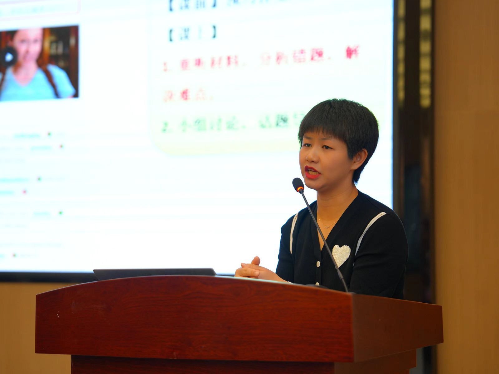 广东工业大学刘思雯老师以《领航大学英语》B1U1为例,从教学目标、教学计划、学情分析、教学反馈等方面分享了形成性评价在翻转课堂中的应用。