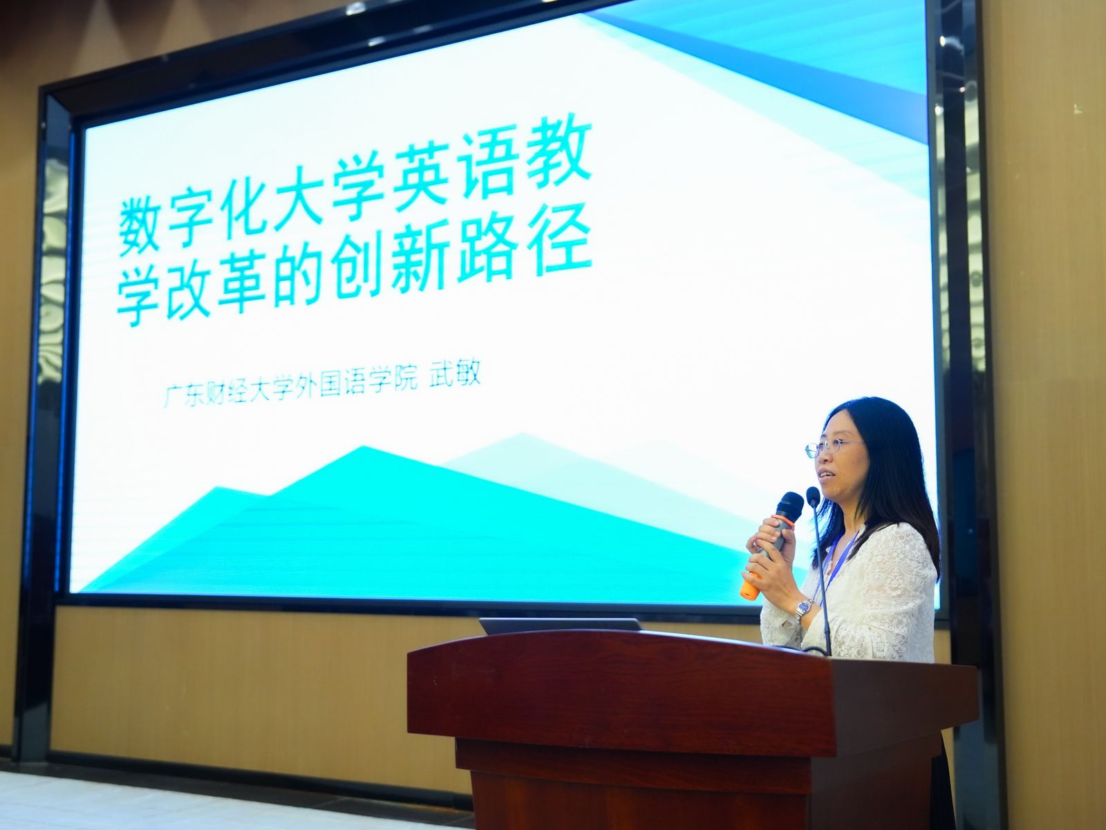下午的主旨报告由深圳大学外国语学院张广奎教授主持。广东外语外贸大学教务部部长、招生办主任陈金诗教授,广东财经大学外国语学院副院长武敏副教授分别以《数字化赋能大学英语课程考试的创新探索》、《数字化大学英语教学改革的创新路径》为题作主旨发言,剖析在数字化背景下,通过先进的技术手段对传统的大学英语教学模式进行优化,借助数字化技术建立全新的、智能的教学模式和管理模式,实现课堂教学与信息技术的深度融合,从而提升英语教学的质量。