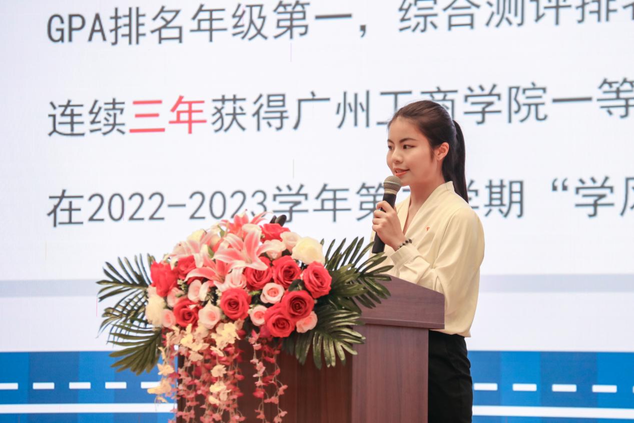 学生工作部部长徐达宣读了表彰决定,对2022-2023学年度获得本专科生国家奖学金的同学们进行表彰。在热烈的掌声中,获奖代表们逐一上台。朱特威为获奖者颁奖。同学们脸上洋溢着喜悦与自豪,展现了广工商学子的卓越风采与昂扬向上的精神风貌。