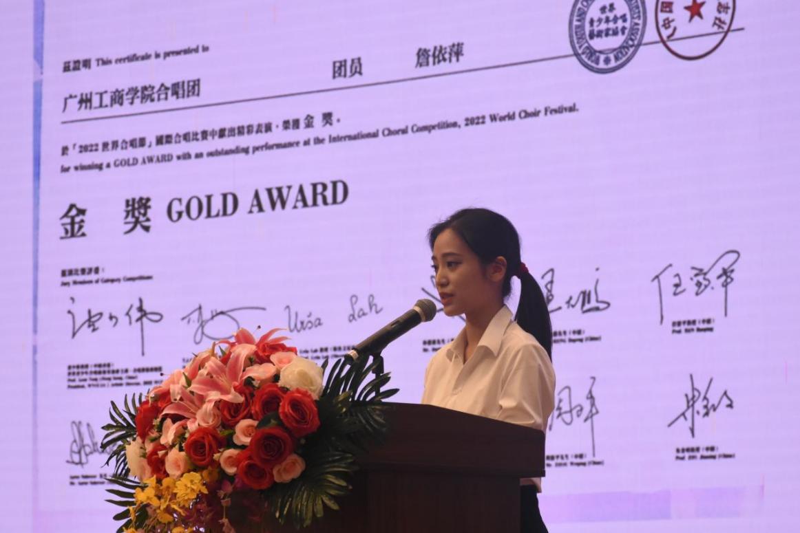 詹依萍,担任学校合唱团声部长、乐舞青春志愿服务队队员;获国家级奖项1项、省级10项、校级7项,曾获2022世界合唱节金奖,2023年广东省第十五届大中小学校“百歌颂中华”歌咏活动二等奖,2023年全球音乐教育联盟第二届青少年艺术展演一等奖。
