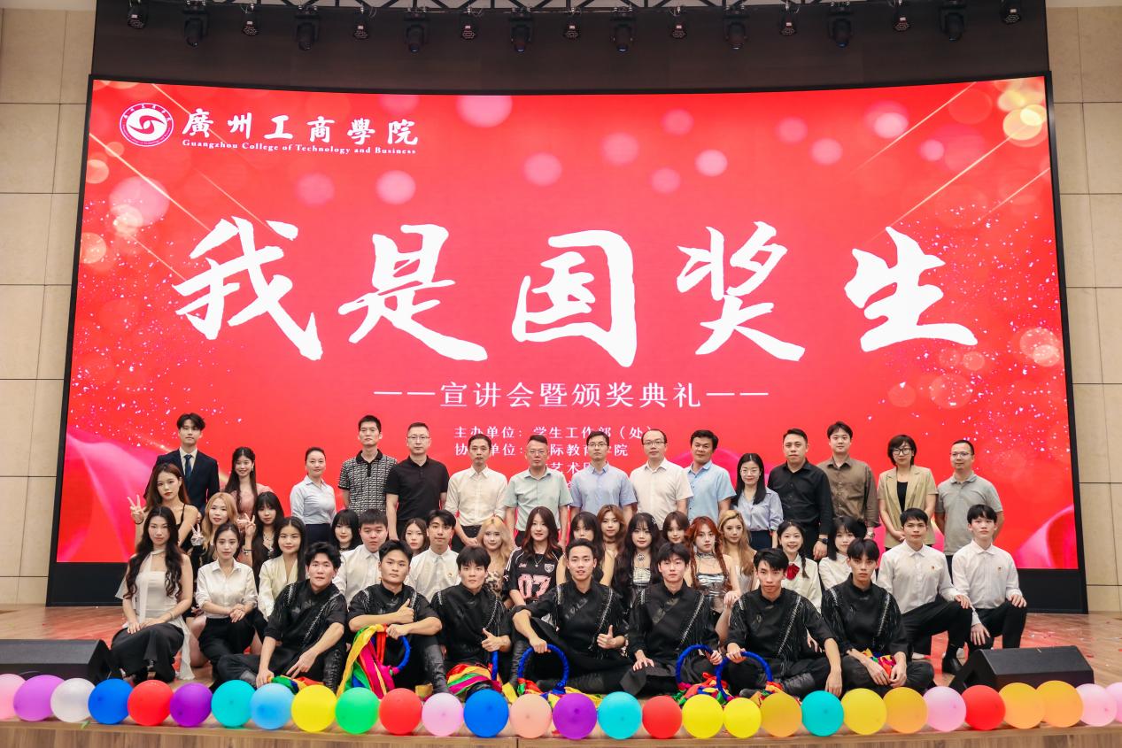 【本网讯】为贯彻落实习近平总书记关于教育工作的一系列重要讲话和指示精神,着力加强社会主义核心价值观教育,充分发挥国家奖学金的导向功能和榜样引领作用,进一步凸显学校资助育人成效,引导学生树立坚定的理想信念,5月29日下午,学校在花都校区举办2023-2024学年“我是国奖生”宣讲会暨颁奖典礼。