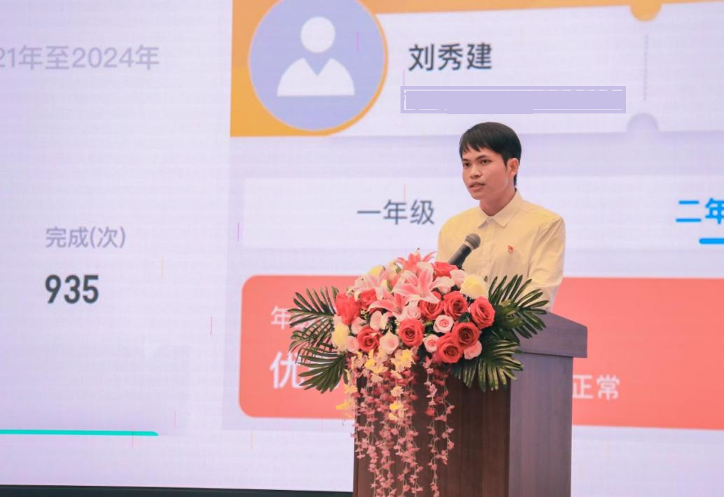 刘秀建,中共预备党员。获国家级奖项1项,校级奖项8项,院级奖项8项,地方奖项1项曾获2022广州市花都区第二人民医院“优秀志愿者”称号;获校级创新创业项目立项1项。他结合经历讲述了军旅铸就坚韧本色,青春永绽芳华,退役不褪军人魂的感人故事。