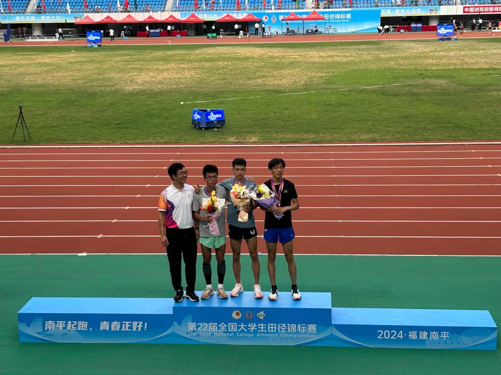 每年一届的全国大学生田径锦标赛共分为四个组别:甲组(普通本科组)、乙组(高职高专组)、丙组(高水平组)和丁组(超级组)。本次比赛的甲组(普通本科组)共有212所高校、941名选手参赛,ky开元田径队选派2名运动员参加此次大赛的甲组比赛。在7月19日下午进行的男子甲组1500米决赛中,有50余名运动员顶着35℃以上的高温参加了激烈的角逐,学校田径队陈治宇同学以3分59秒72的成绩获得男子甲组1500米决赛第四组第一名(见本文中由赛会统一录制的精彩比赛视频),最终获得男子甲组(普通本科组)1500米银牌!与金牌获得者仅差0.26秒,虽有遗憾,但他带伤参赛、顽强拼搏的精神,不仅为学校争得了荣誉,也为全国大学生运动会增添了一道亮丽的风景。