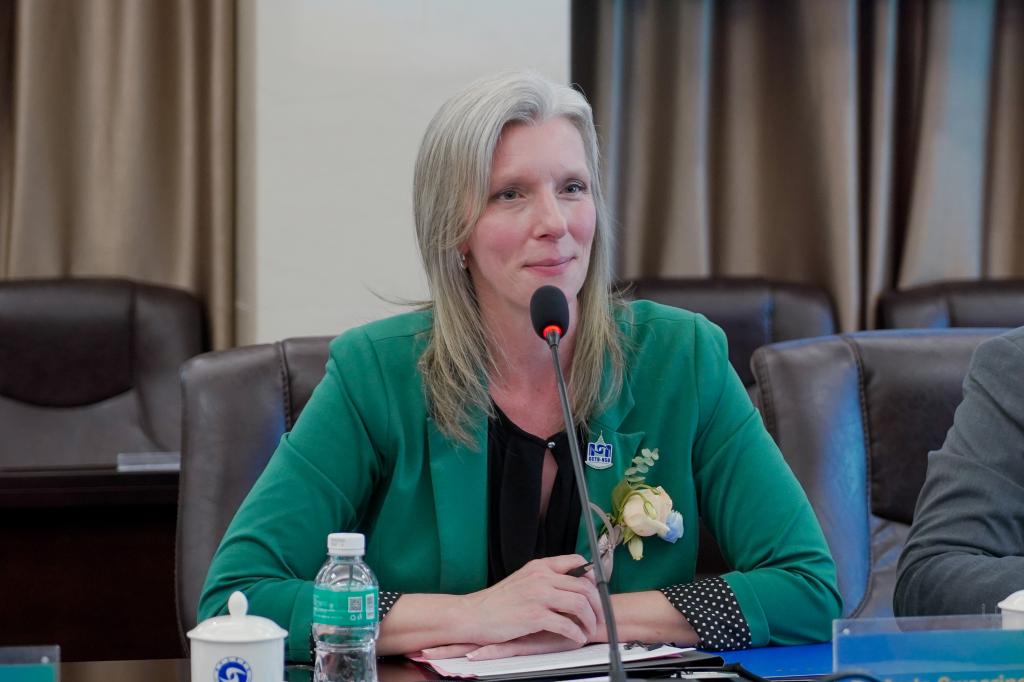 副主任委员、美国东北州立大学副校长Dr. Carla Swearingen致辞。她十分肯定联合科技学院的办学成果,表示将继续支持与配合学院工作,期待双方今后加强学术交流与合作,共育英才,共创辉煌。