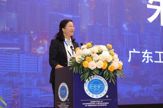 朱蔚蔚在致辞中强调了广东工业大学在新兴经济体研究和新质生产力培育方面的贡献,介绍了学校在科技创新和人才培养方面的成就,指出本次论坛旨在讨论新兴经济体的高质量发展的新思路和新方向。