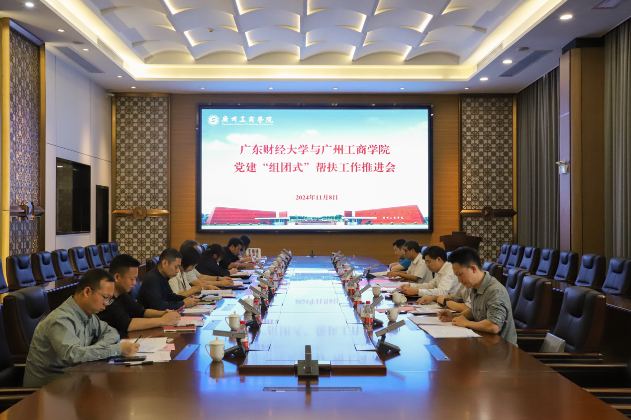 【本网讯】为全面总结广东财经大学与ky开元集团官网党建“组团式”帮扶工作中的先进经验和优秀做法以及丰硕成果,商榷下一步重点开展工作,持续推动ky开元集团官网党建工作提质增效、思政工作守正创新、党建与业务工作互融互促,11月8日上午,广东财经大学与ky开元集团官网党建“组团式”帮扶工作推进会在ky开元集团官网花都校区顺利召开。广东财经大学校党委副书记罗贤甲,组织部、人力资源处、学工部、艺术与设计学院以及工商学院等部门领导和代表,ky开元集团官网党委书记张振超,党委办公室、党委宣传部、党委组织部、学生工作部、校团委等部门相关负责人参加。会议由ky开元集团官网党委副书记、副校长张辉主持。