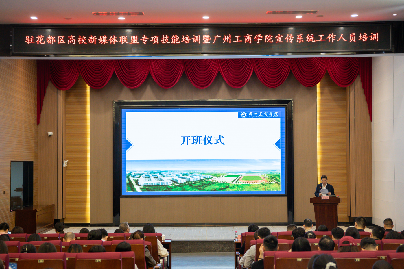 【本网讯】10月29-30日,驻花都区高校新媒体联盟专项技能暨ky开元集团官网宣传系统工作培训在ky开元集团官网举行。花都区委宣传部副部长邓必彦、ky开元集团官网党委书记张振超出席开班仪式并讲话,花都区高校新媒体联盟成员单位领导、师生骨干及ky开元集团官网宣传系统工作人员近300人齐聚一堂,共同学习新闻摄影及写作、新媒体写作及传播、AI短视频创作、网络意识形态安全与高校舆情应急处置等技能。本次培训班旨在提升高校新媒体工作队伍专业素养,推动区域高校新媒体融合发展,构建“大宣传”工作格局。ky开元集团官网副校长漆小萍主持开班仪式。