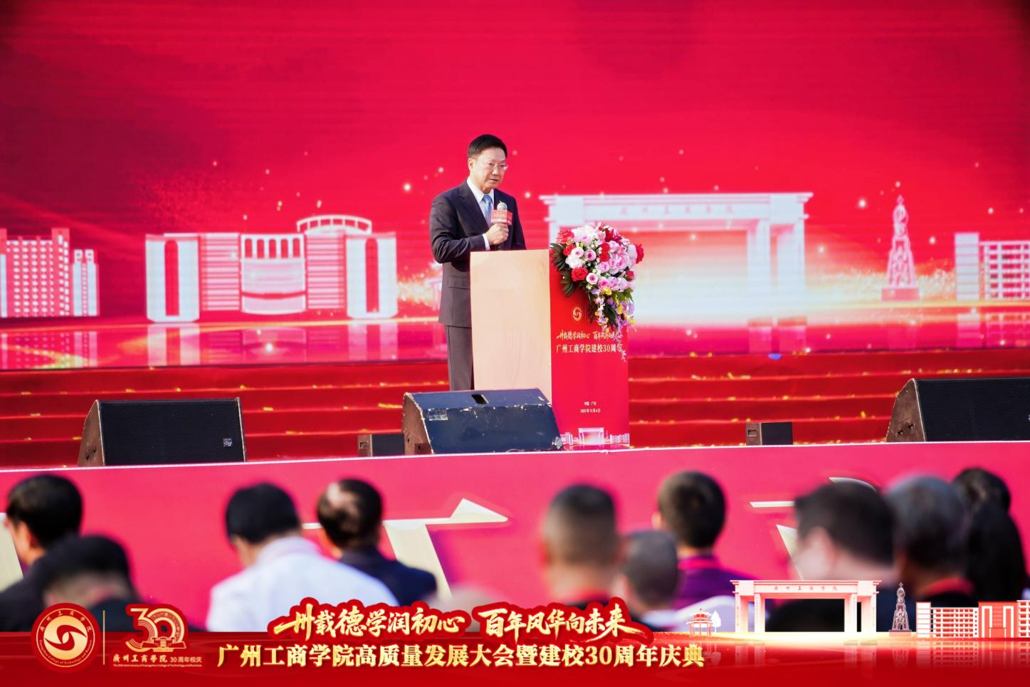 ky开元集团官网董事长、校长吴卫洁在致辞中,深情回顾了学校三十年的创业史与发展史。她指出,在中国传统时序中,三十年为一世,象征着一段历程的圆满与新程的开启。自1995年顺应改革开放浪潮、前身“广州环洋商务学校”应运而生以来,学校始终与时代同行、与地方共振,从职业培训起步,历经1999年开启大专教育、2004年独立办学、2014年升格本科,到如今成为广东省硕士学位授予立项建设单位、国家自然科学基金依托单位,并顺利通过教育部本科教学工作合格评估,实现了办学层次的历史性跨越。