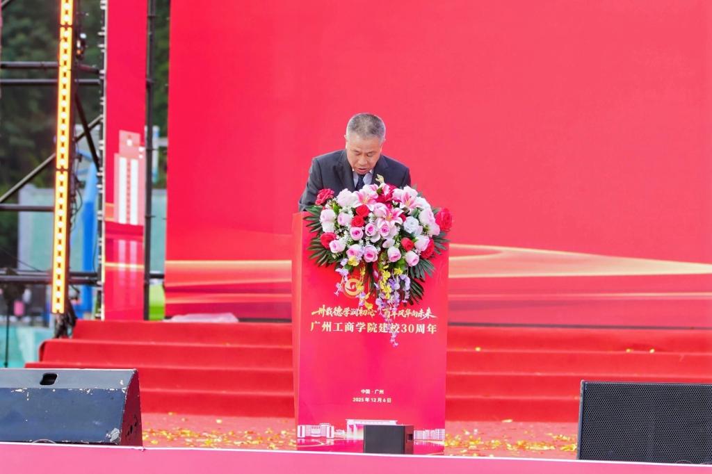 广东财经大学校长于海峰深情回顾了两校“同根同源”的深厚情谊。他提到,广工商创办之初的办学地址正是原广东商学院花都教学点,两校教师在艰难岁月中并肩耕耘。近年来,通过党建“组团式”帮扶等机制,合作已从“任务书”变成了“成绩单”,期待两校在学科建设、人才培养、产教融合等方面进一步深化合作,共同推动区域高等教育高质量发展。