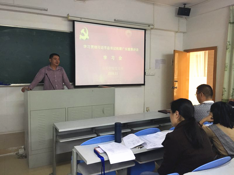 【本网讯】11月14日下午,公开学院全体教职工济济一堂,集中在经管楼召开“关于学习贯彻习近平总书记视察广东重要讲话精神学习会”。会议由党支部书记陈寿长同志主持。