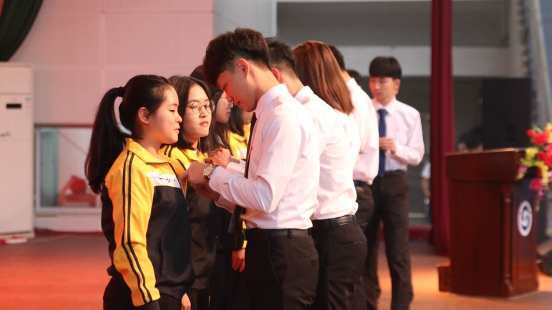 大会在全体奏唱国歌中拉开帷幕,学生会自律委员会国旗护卫队代表缓缓引出团旗,由新团员代表谢秋嫦、欧阳晋宇同学带领宣誓,全体宣誓成员声音嘹亮,回荡全场。随后举行团员代表为新团员佩戴团徽仪式,熠熠生辉的徽章象征着青年的光荣,同样也给青年团员带来了沉重的使命。新团员代表黄惠雅、蓝斯同学发言,他们表示:青年的我们正处于朝气蓬勃的年纪,青年要成为共青团的重要力量,新团员们要争做优秀的共青团员。团委洪卫烈书记为本次大会致辞,他首先向正式入团的新团员表以祝贺,并希望他们牢记今天的青春誓言,勤于学习,作一名有恒心,有毅力,肯下苦功的团员,以实际行动践行邝院长提出的“以德为行,以学为上”教育思想,积极参与“五进”活动,不负众望,努力学习,不断进取,树立正确的世界观、人生观、价值观,为青春添彩,以实际行动为团旗增辉,为早日成为国家栋梁而发奋图强。最后,一曲团歌《光荣啊!中国共青团》为本次大会画下圆满句号。