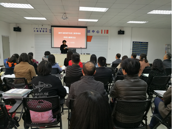 【本网讯】为了进一步提升教职工的科研水平、促进科研质量的不断提高,形成相互学习、相互探讨、共同进步的良好氛围,工商管理系于12月21日下午在第二实验大楼A栋302举行2017-2018学年科研主题报告会。全系教职工出席参加,高光锐教授主讲。