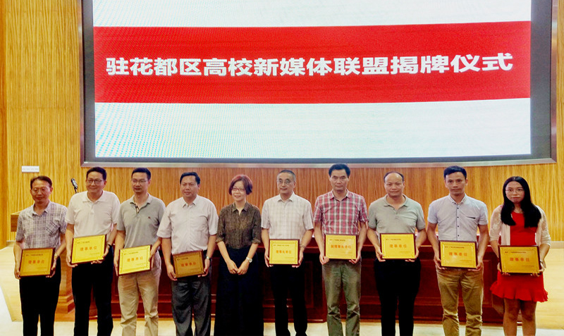 为有效地整合花都区各高校的校园媒体资源,实现资源共享、引导舆论、打造品牌,在花都区区委宣传部的部署、指导下,华南理工大学广州学院牵头组织,6月29日,驻花都区高校新媒体联盟正式成立。花都区区委常委、区委宣传部部长邹璇,区委宣传部常务副部长李君民,秀全街党委书记陈耀斌及各理事单位学院代表出现了成立大会。我院作为理事单位由新闻发言人、院办主任李秀吉出席了会员大会及成立典礼。