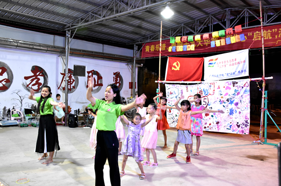 白驹过隙,时光荏苒。18日19点,“爱*启航”服务队在潮州市潮安区古巷镇东岗村举行以“奏响十九大华章,引领少年新风采”为主题的文艺汇演晚会。此次晚会邀请了东岗村村委、东岗小学校长和老师等到场观看。服务队和东岗村的孩子们为村民们带来了一场精彩纷呈的晚会,吸引众多村民前来观看,得到村民的认同和赞赏。晚会内容丰富多彩,既有村民们熟悉的潮剧,又有孩子们喜欢的跆拳道、健美操、手语及歌舞表演等。这场晚会不仅给予了孩子们一个展现自我的舞台,更给东岗村带来热闹的氛围及注入青春的活力,促进了村里的精神文明建设。