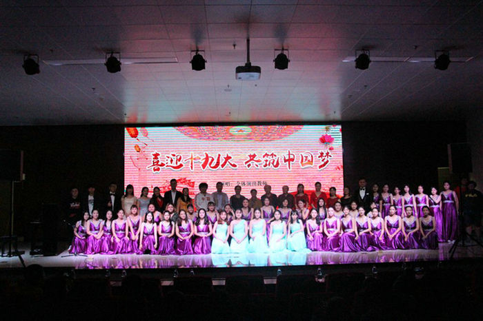 【本网讯】10月16日晚,音乐系师生为庆祝中国共产党第十九次全国代表大会的即将召开,在学院三水学生活动中心举行了一场“不忘初心 喜迎十九大”师生音乐会。学院副院长乔丽媛教授、学院党委副书记吴丽云教授以及500多名师生代表观看了演出。