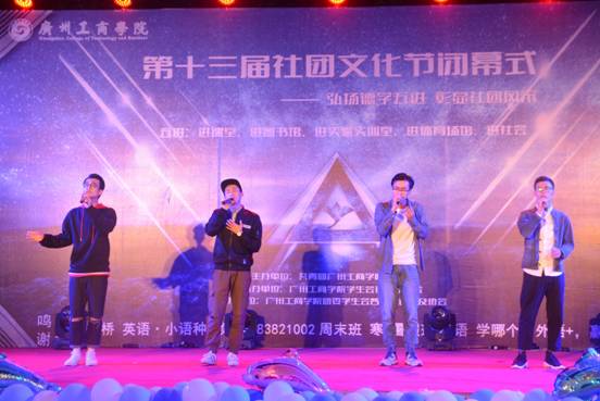 【本网讯】2017年4月13日晚上7点,由共青团广州工商委员会主办、社团联合会承办的社团文化节闭幕式在花都校区文化广场举行,出席本次晚会的嘉宾有团委和继续教育与培训学院教师代表,院团委学生会学生代表和花都区各兄弟院校社联代表等参加了本次晚会。