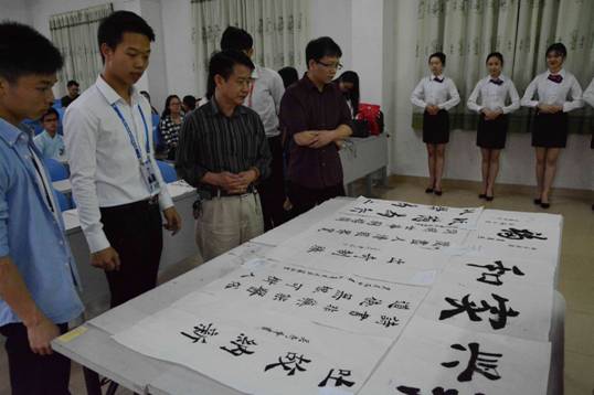 比赛开始前,评委们参观了现场展示的书画作品。学院党委副书记、学生处黄鹏处长为本次比赛致辞。本次决赛分为画画、硬笔及毛笔三个项目。比赛中,参赛选手们挥洒自如,镇定自若地创作着自己的作品。比赛时间结束后,一份份饱含心血与真诚的作品展示在同学们的眼前。各参赛选手认真地对自己的作品进行了介绍,评委们对他们的作品进行了详细的点评,给现场的同学上了一节精彩生动的课。最后,梁炳伦主席、彭泽祥副主席分别题字“王道生”“正德厚生,励志修能”,并为获奖选手颁奖。