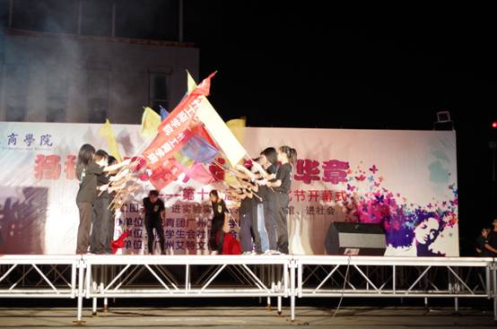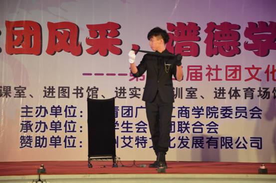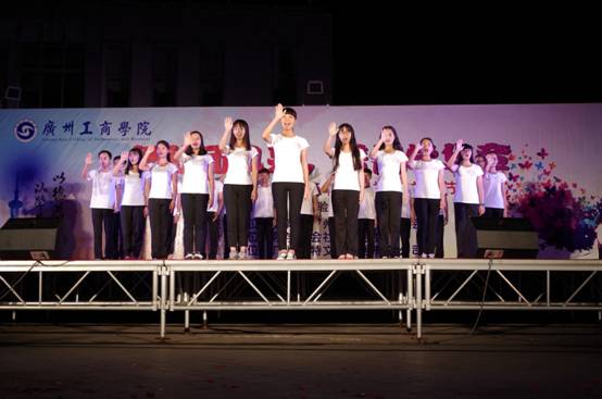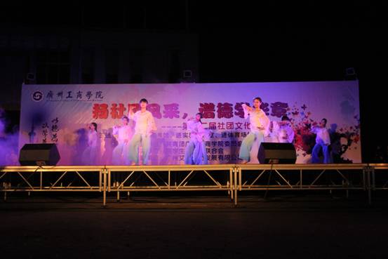 开幕式上, 社团联合会下设的25个协会分别展现了各自的风采与魅力;以歌曲串烧,T台秀,舞台剧,魔术、书画展等形式多样的节目给观众带来一场充满浓郁社团风情和“五进”特色的文艺表演,为广州工商学子带来了不一样的视觉享受。其中青年志愿者行动指导中心带来的《手语》以极富表现力与感染力的肢体语言,一展大学生积极向上的精神风貌。