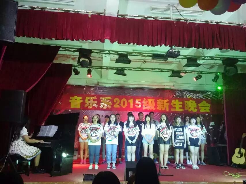 【本网讯】10月26日晚,我院音乐系在实验楼105举行了2015级新生晚会。音乐系程建平主任、赖晓芬副主任及各专任教师出席了本场晚会。