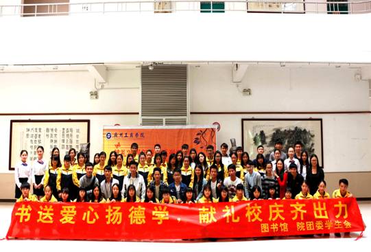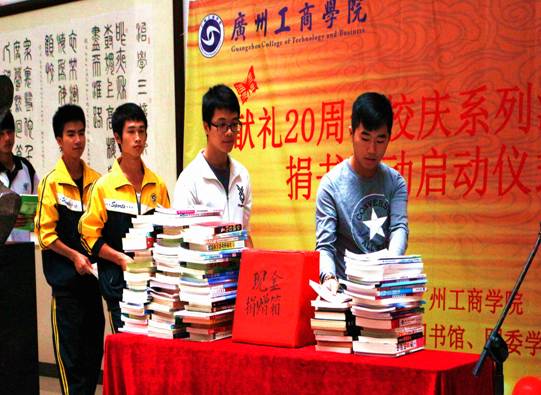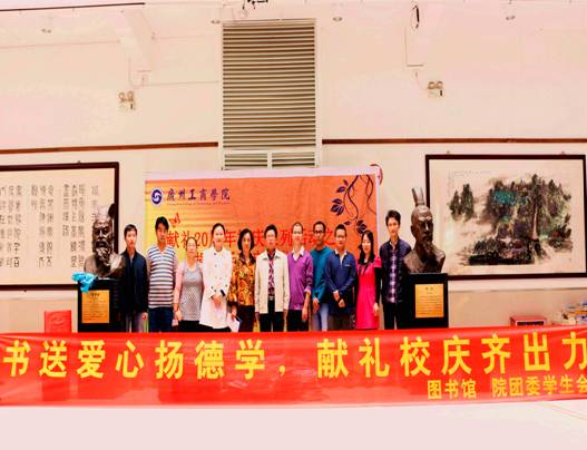 【本网讯】11月3日中午,由学院图书馆、团委学生会联合承办的“书送爱心扬德学,献礼校庆齐出力”捐书活动启动仪式于我院花都校区图书馆一楼大厅举行。学院党委副书记、学生处处长黄鹏,图书馆馆长吴剑,甘南挂职教师代表以及学院师生代表等共150余人参加了启动仪式,仪式由学院团委书记陈豫岚主持。
