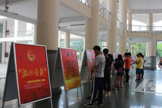 【本网讯】6月8日至11日,由共青团广州市委员会、广州青年运动史委员会主办,学院团委承办的“热血青春——中国共青团早期人物展”于我院花都校区教学楼大厅举行。当清晨第一束阳光照进教学楼大厅之时,许多上课路上的同学们禁不住被大厅中央的一幅幅红色的人物照片所吸引。从“上海社会主义青年团主要发起人”陈独秀、李汉俊、李达、俞秀松到“团一大”的代表张太雷、蔡和森、冯菊波,再到“各地再起地方团职代表”毛泽东、周恩来等革命先驱,在党团组织创建时期的生平事迹及其与中国共产党、共青团的渊源,无不展示了上世纪二十年代革命青年在党的领导下为革命理想奋斗的光辉。