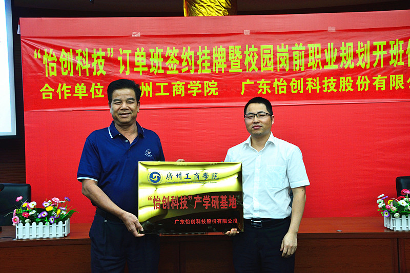 【本网讯】5月15日,我院计算机科学与工程系与广东怡创科技股份有限公司在花都校区教学楼7楼学术报告厅隆重举行“怡创科技”订单班签约授牌暨课程开班仪式。学院校企合作管理中心利汉权主任、计算机科学与工程系主任彭平,广东怡创科技股份有限公司人力资源部总经理叶全南、第四事业部副总经理邓宇全等出席了会议。学院校企合作管理中心相关负责人、企业代表、教师代表、学生代表等80余人。