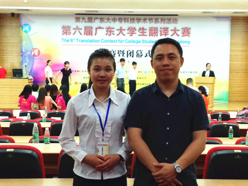 【本网讯】在院团委的组织协调下,我院外语系商务日语专业教师高亮于6月7日带队参加了第六届广东省大学生翻译大赛决赛。由谭翠鸿老师指导的13级商务日语2班的黄瑶瑶同学获得了高职高专组日语口译三等奖。