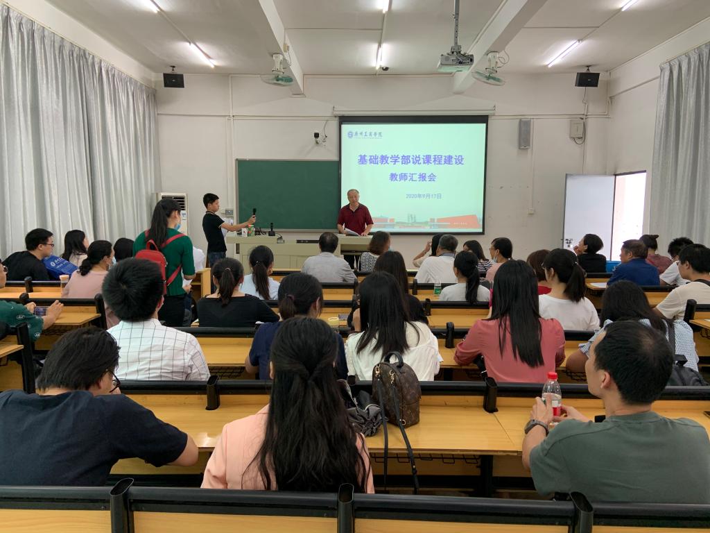 【本网讯】9月17日下午,基础教学部在三水校区教I204和教I205分别举行了“说课程建设”竞赛活动。基础教学部主任邱云兰主持会议,15名选手参赛,部门全体教职工参加观摩。