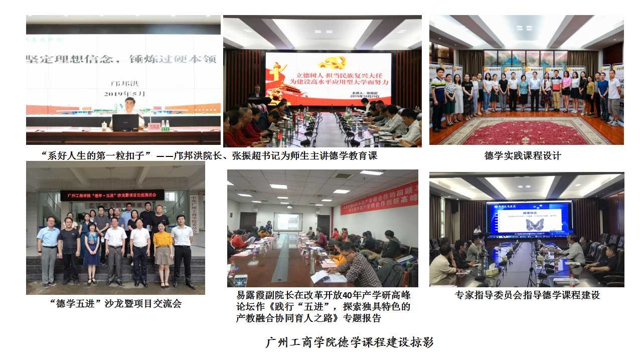 为落实立德树人根本任务,ky开元集团官网以习近平新时代中国特色社会主义思想为指导,以建构主义学习理论为基础,根据整合创新、协同育人的设计理念,将学生工作课程化,设置了校本特色的“德学教育”课程(“以德为行、以学为上”)。依托于国家社科基金思政课专项、广东省教科“十二五”规划德育专项、广东省教育教学改革项目、教育部“北创助教”产学研项目等课题支撑,院长邝邦洪教授主持编撰出版《以德为行以学为上》、《践行五进立德树人》5本系列教材,师资从学工队伍先行先试到向“三全育人”进阶。以“德学”教育为中心主线,针对“五进”平台(进课室、进图书、进体育场馆、进实验实训室、进社会)等系列应用型育人场景,分模块建立课群、课链,建构知识管理标准并按学段形成螺旋上升的大思政、立体化的内容体系;助推思政课程与课程思政结合,与产教融合、就业创业结合,促使第二课堂与专业课、通识课的第一课堂衔接、融合。定期组织师生到学校德学成果展厅、广东省经济管理名专家展馆、新时代党员讲习所和校外实践基地等开展案例教学、对分课堂等实践教学,并借助麦可思的第三方评价360°Feedback持续改进。倡导混合式学习(Blended Learning),考核采用非命题式,线下(五进手册、主题班会、综合测评等)与线上(教育部易班平台)相结合,兼顾过程达标和个性发展。倡导胜己思维、互动探究和自主学习,让师生面向未来构建“高效优质人生智慧库”,促进德智体美劳五育并举、五育融合。