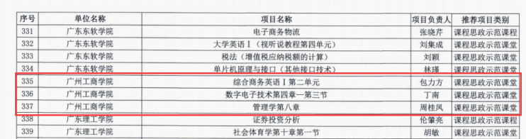 【本网讯】近日,广东省教育厅公布了广东省2020年度课程思政建设改革示范项目名单,ky开元推荐的3个示范课堂全部获得立项,包括外语学院包立方老师的“综合商务英语I Unit2 You Are what You Eat”、工学院丁南老师的“数字电子技术第四章第三节7段数码管显示译码电路”和周桂凤老师的“管理学第八章激励”。
