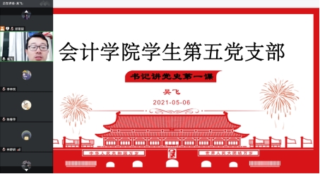 【本网讯】为深入学习贯彻习近平总书记在党史学习教育动员大会上的重要讲话精神,会计学院学生第五党支部通过聚焦理论学习、聚焦服务社会,于5月6日通过腾讯会议组织在外实习的毕业生党员们学习党史,进一步激发同志们的责任感和使命感。支部书记吴飞同志主持会议,全体党员共21人参会。