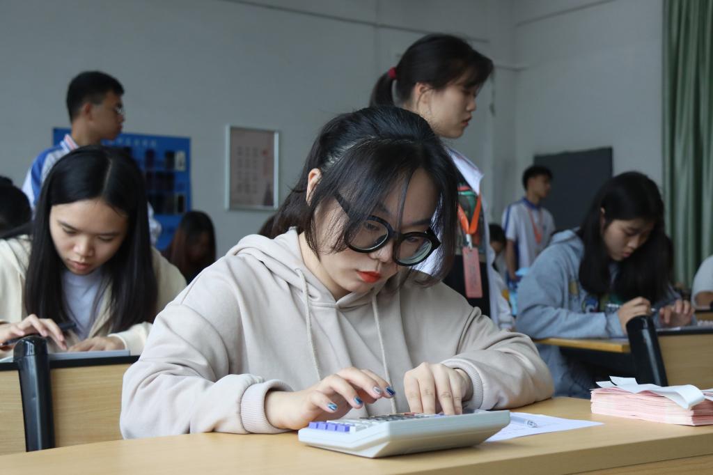 比赛现场,参赛选手争分夺秒、手法娴熟地细数手中的钞票;灵活地拨动算盘并精准地写出答案;运用熟练和高超的技法拨打计算器键盘……整个比赛现场只剩下数钞时的“唰唰”声、算珠互相撞击发出的清脆声以及敲击计算器时富有节奏感的声响,现场气氛激烈且紧张。
