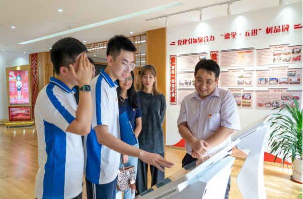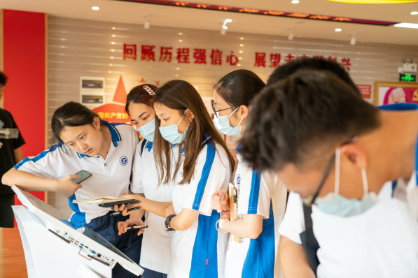 在讲习所储备着大量党史知识的智能触控一体机前,同学们进行了在线党建学习,他们踊跃答题、热烈讨论并开心地分享了学习成果。他们纷纷在电子留言屏上写下了“永远跟党走”“全心全意为人民服务”“不忘初心、牢记使命”“讲好中国故事”的感言,抒发参观讲习所的感受和对党的热爱之情。