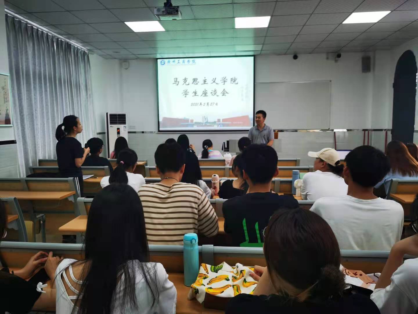 【本网讯】为贯彻落实ky开元邝邦洪校长所提倡的“以德为行 以学为上”的教育思想,深入了解本学期思想政治理论课开设情况,听取学生对思想政治理论课的意见及建议,进一步加强和改进教学,5月27日,马克思主义学院在花都校区教学楼504召开了2020-2021学年度第二学期花都校区学生座谈会。马克思主义学院卢剑锋老师、郝建丽老师及40多名学生代表参加座谈交流。