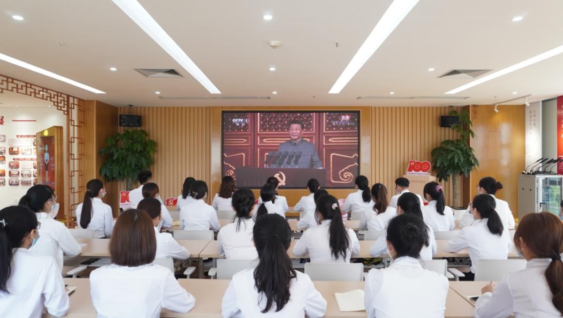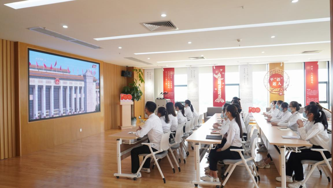 【本网讯】一百年风雨兼程,九万里风鹏正举。7月1日是中国共产党成立100周年华诞。上午8点,学校新时代党员讲习所组织观看庆祝中国共产党成立100周年大会直播,星火志愿讲解队与青萌公益的同学相约到馆,观看直播,深刻领会习近平总书记重要讲话精神,并畅谈感想体会。