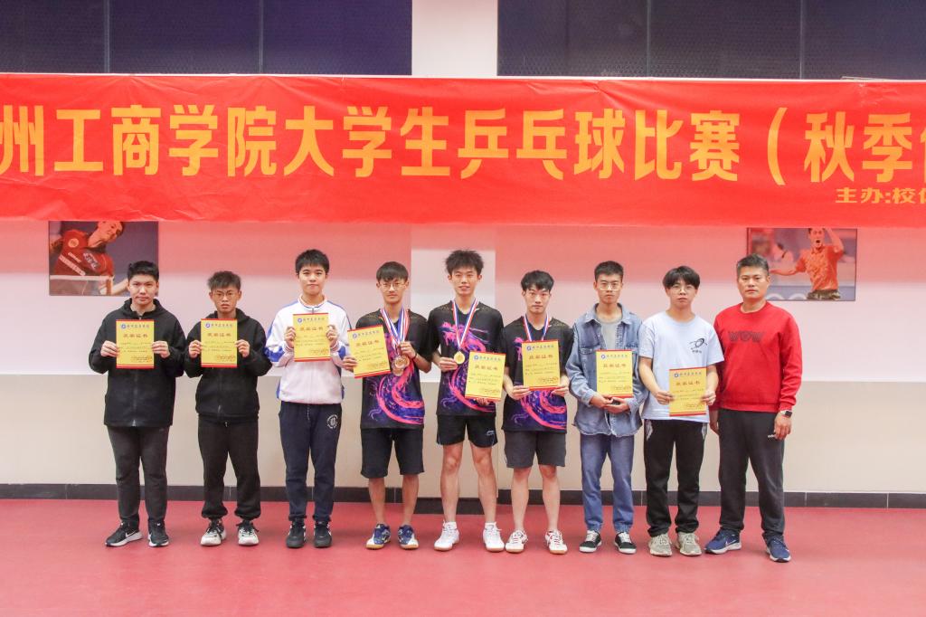 获得男子单打前八名的为继续教育学院二部邓裕新、继续教育学院一部周立川、外语学院林凡扬、继续教育学院二部孙伟鸿、外语学院莫浩龙、商学院梁伟维、商学院陈放、商学院莫景灏。