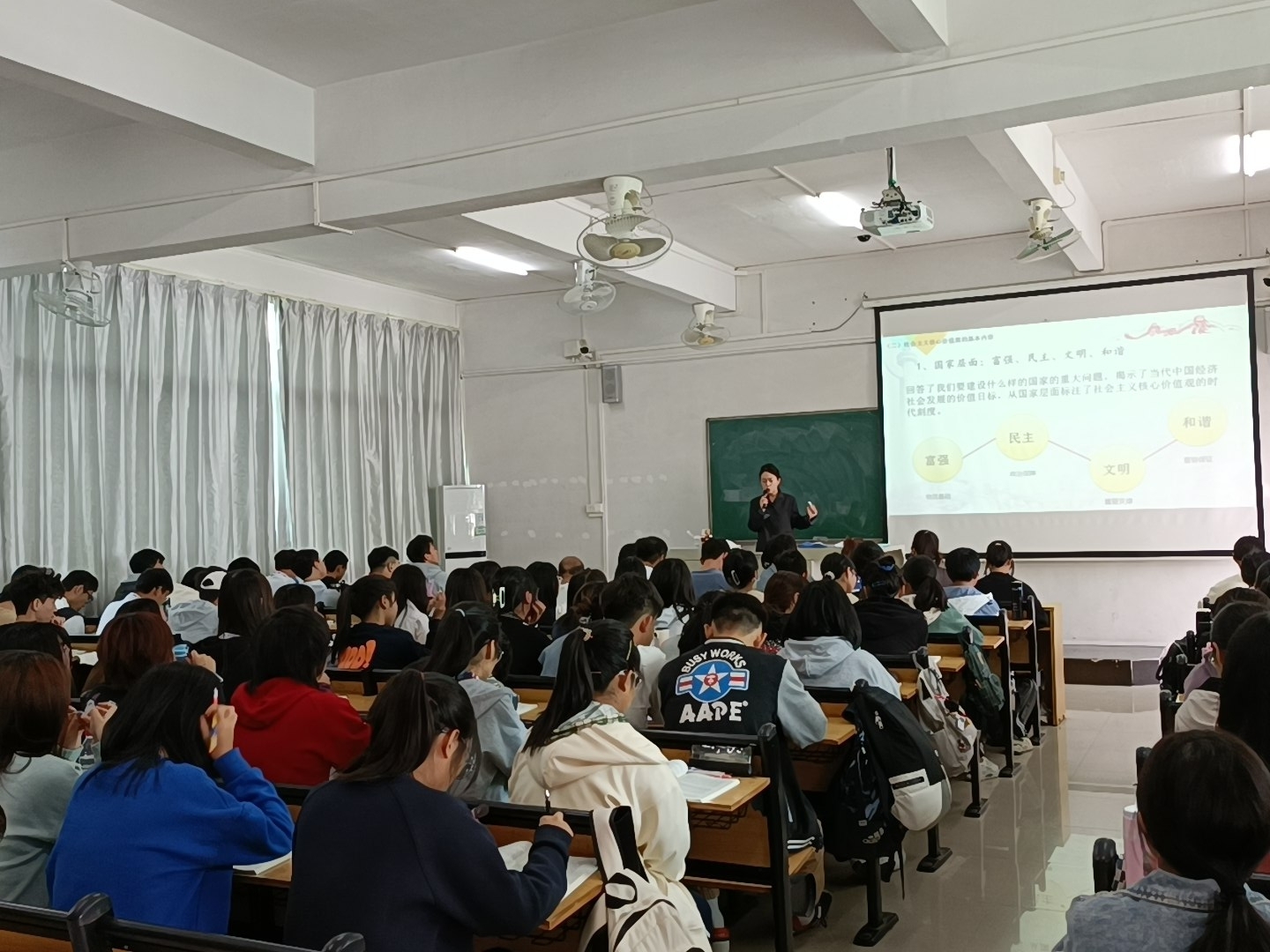 课堂上,邝校长和张副校长与学生一同听取了马克思主义学院李叶子老师讲授的《中国近现代史纲要》课程以及闫安老师讲授的《思想道德与法治》课程,并做了详细的听课记录。邝校长对两位授课教师认真的教学态度、饱满的工作热情和清晰的教学思路均给予了充分肯定。同时,就教学内容、教学方法、教师教学能力培养等方面与马克思主义学院领导进行了深入交流。邝校长指出,思政课担负着铸魂育人、培育时代新人的崇高职责使命,长期以来受到党中央的高度重视,作为高校思政课教师,必须进一步强化主体责任意识,按照习近平总书记提出的“六个要”“八个相统一”要求,不断创新教学方法,重视对学生的个性化和多样性教育,引导学生的学习兴趣,从而更好地提升教育教学效果。马克思主义学院要高度重视年轻教师的培养,多渠道培养提升年轻教师的教学能力。