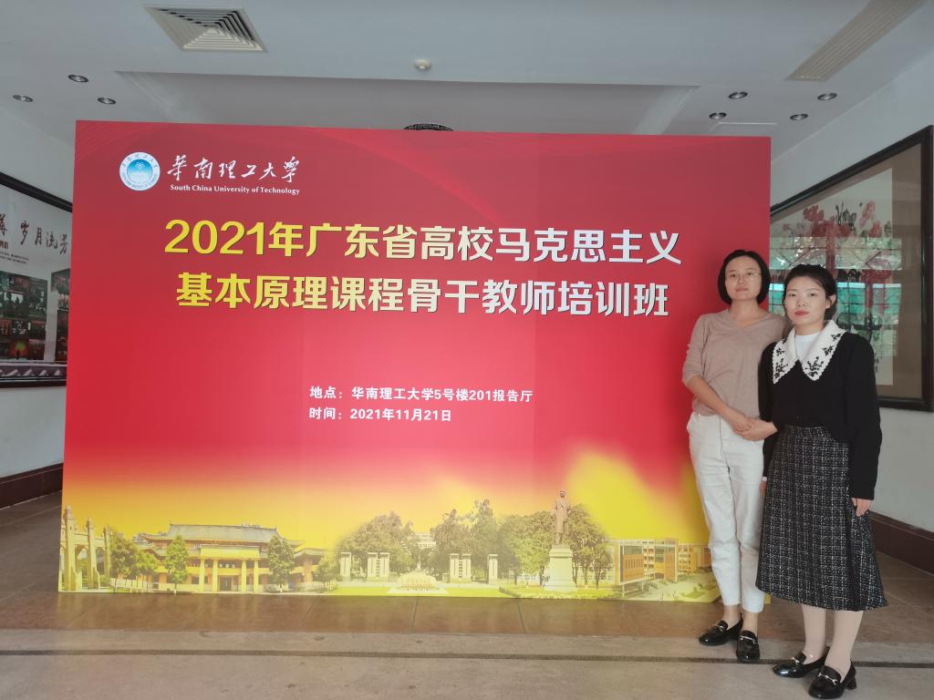 【本网讯】11月21日,由广东省教育厅和广东省高校思政课区域协同创新中心主办、华南理工大学马克思主义学院承办的2021年度广东省高校马克思主义基本原理课程骨干教师培训在华南理工大学举行。为进一步提升ky开元思想政治理论课教师的专业素养与综合素质,积极践行学校“德学”教育思想和“五进”教育实践活动,马克思主义学院选派马克思主义基本原理教研室主任杨丽丽和马丽洁两位青年教师代表参加。