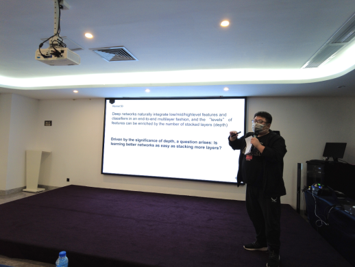 徐永哲博士向大家分享了他的学术研究《Deep residual learning for recognition》。