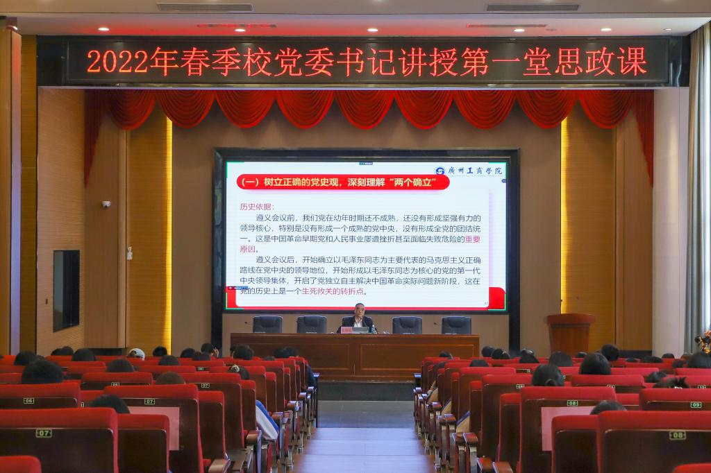 【本网讯】3月23日下午,校党委书记张振超开讲新学期“第一堂思政课”。校团委书记洪卫烈老师主持,马克思主义学院教师代表、各二级学院辅导员代表及学生代表现场聆听授课,其他师生同步收看视频直播。