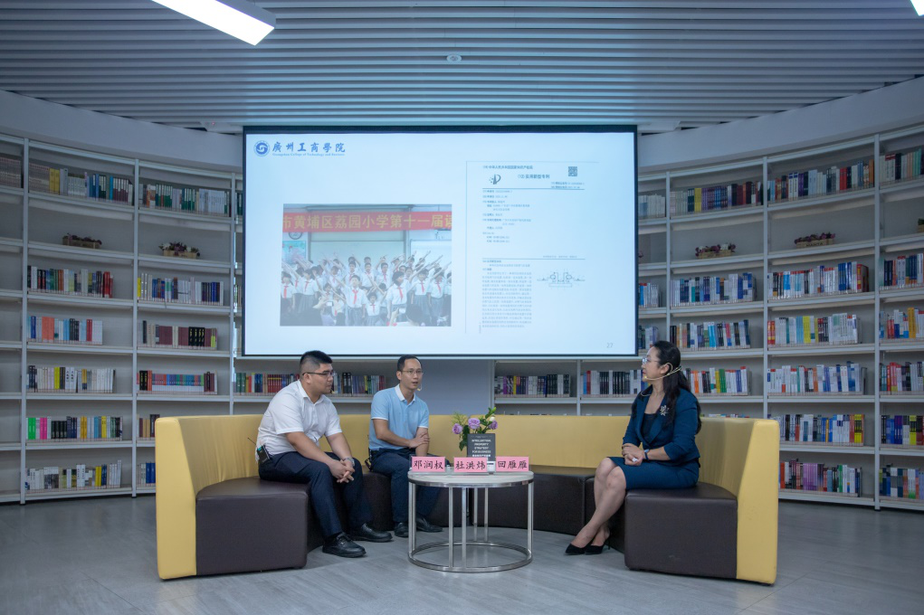 【本网讯】为做好知识产权宣传,进一步加强学校师生对知识产权的认识和了解,结合知识产权示范校建设工作,在学校易露霞副校长的倡议和推动下,4月28日下午,校企合作管理中心、图书馆与工学院借助“万卷万里”读书平台,在三水校区图书馆113主题活动室联合举办“企业家进校园——谈知识产权对个人及企业发展的影响”活动。活动由图书馆回雁雁馆长主持,校企合作管理中心林启德副主任、图书馆王自东副馆长、工学院罗俊副院长及50多名师生参加。活动特别邀请广东合誉律师事务所邓润权、杜洪炜律师作嘉宾,为师生进行案例分享和答疑解惑,采取“线上+线下”的方式进行。