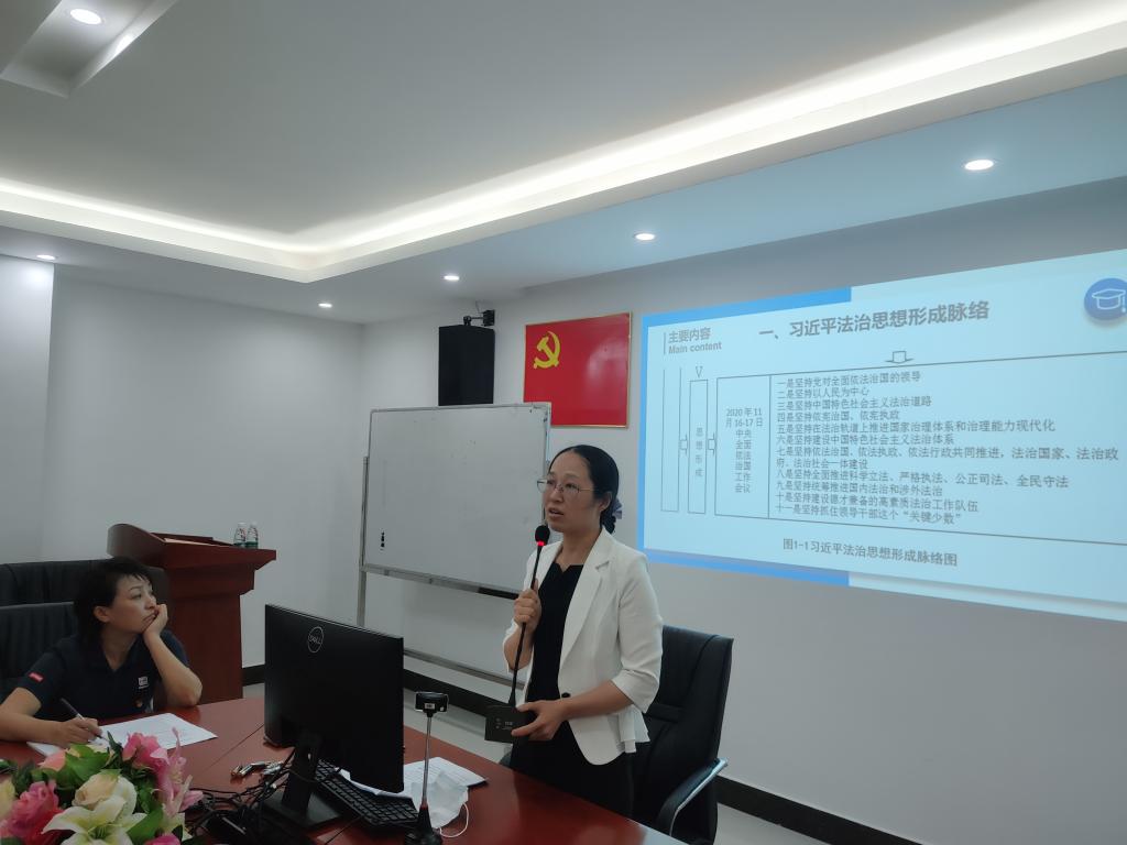 会上,全桂艳副书记从习近平法治思想形成脉络、习近平法治思想体系结构、习近平法治思想原创性贡献三个方面作领学报告。她指出,习近平法治思想的形成经过习近平总书记在河北、福建、浙江主政时期的实践起始,十八大、十九大的蓬勃发展、2020年11月召开的中央全面依法治国工作会议,确立了习近平法治思想在全面依法治国中的指导地位,思想形成三个阶段,为新时代马克思主义法治思想中国化和中华法治文明传承与发展作出卓越贡献。