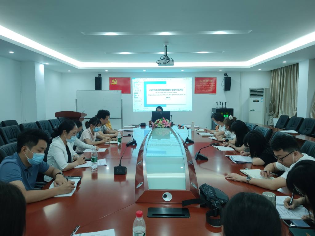 【本网讯】6月17日,会计学院党总支理论学习中心组召开专题学习会,深入学习习近平法治思想及学校章程。会计学院党总支常务副书记、副院长全桂艳以“习近平法治思想脉络结构与原创性贡献”为主题作领学发言,教工第二党支部书记周福萍同志作学习分享发言。会计学院党总支全体党务干部参加学习。学习会由总支宣传委员刘帅飞主持。
