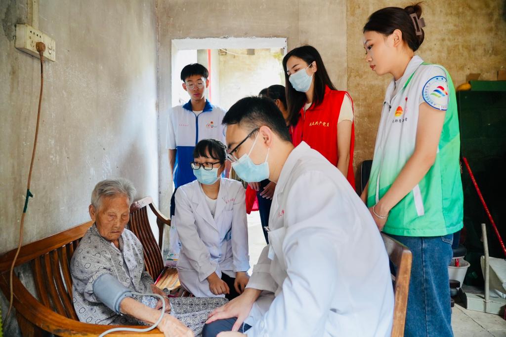 图为健康志愿服务团走进年迈老人的家中提供常规检查,健康问诊等健康服务