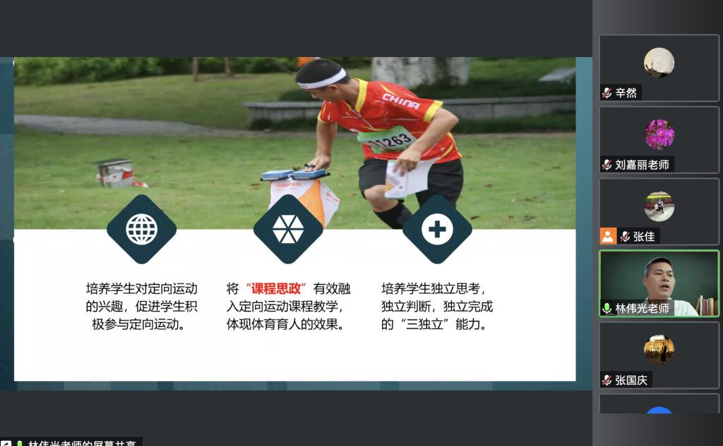 【本网讯】为落实立德树人根本任务,充分发挥教学竞赛在教师队伍素质建设中的引领作用,促进教师教学技艺交流切磋,根据学校首届教师综合教学大赛的部署安排,10月20日下午,体育部通过腾讯会议的方式举行了初赛,初赛包括课程说课和课堂教学两大部分。本次比赛由体育部主任刘嘉丽教授主持,体育部高职称教师和教研室主任担任评委,共7位教师参加了本次比赛,全体教师参与了听课活动,最后由体育部兼职督导彭文革教授对比赛进行了点评。