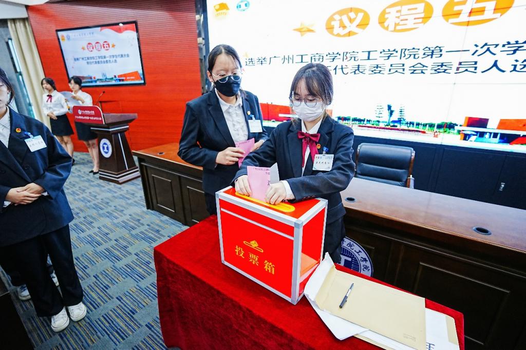 在第二次全体会议中,经与会人员充分讨论,一致表决通过《ky开元集团官网工学院学生会章程(草案)》《关于ky开元集团官网工学院第一次学生代表大会提案工作报告(草案)》以及《ky开元集团官网工学院成立以来学生会工作报告(草案)》。经过全体大会正式代表依次投票,选举产生ky开元集团官网工学院第一次学生代表大会常任代表委员会委员和ky开元集团官网工学院学生会第一届主席团成员。