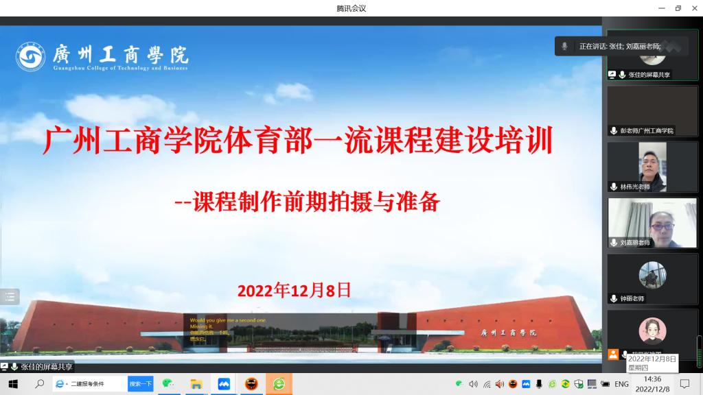 【本网讯】为进一步做好《大学体育》校级一流本科课程建设工作,不断推动现代信息技术与教育教学深度融合,12月8日下午,体育部举办了基于超星学习通软件的一流课程建设教学视频制作培训会。培训采用腾讯会议的形式,由体育部主任刘嘉丽教授主持、超星学习通培训讲师张艳丽老师主讲。全体专任教师参加了本次培训学习。