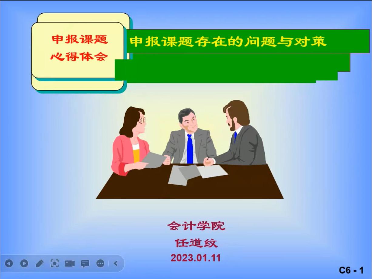 【本网讯】1月11日晚上,会计学院召开科研项目申报动员会暨科研项目申报讲座。讲座采取腾讯会议线上的形式进行。讲座由会计学院院长任道纹博士主讲,会计学院全体教师参加。